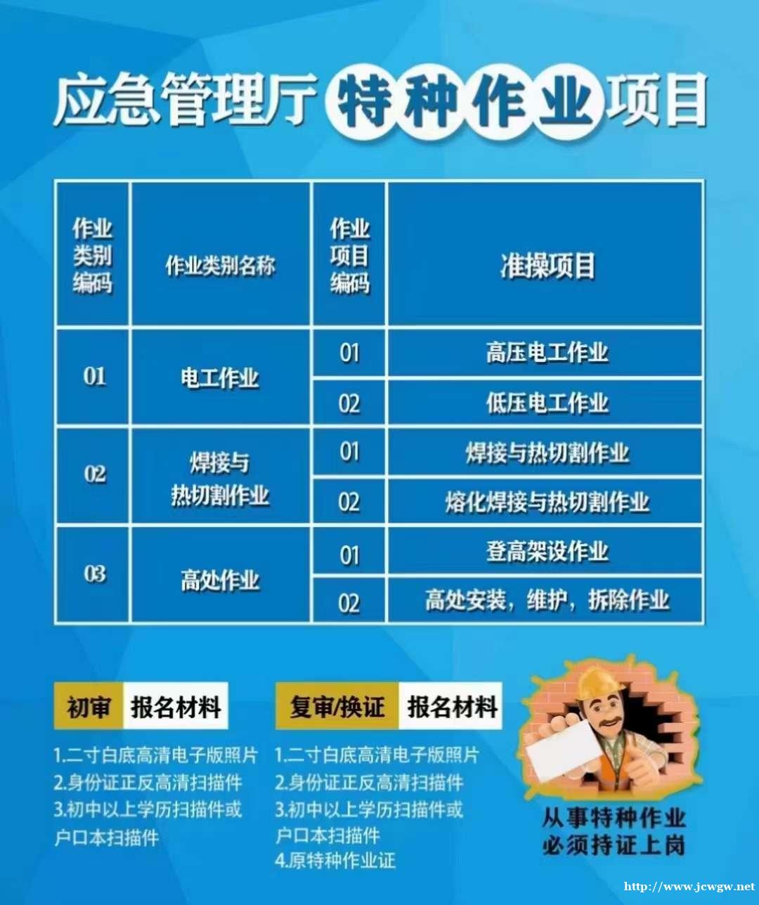 项目(一)安监部门特种上岗证报名取证范围:低压电工,高压电工,高处作业,制冷,电气试验,继电保护,防爆电气等:周期两个月左右